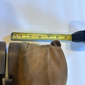 Good condition booties that March any outfit. They are about a size 9 to 9 1/2 therefore placed measuring tape next to it. Cannot find the size. Wear and minor stains as shown.