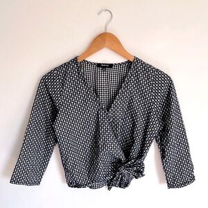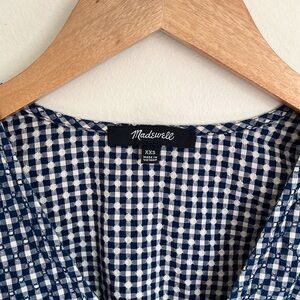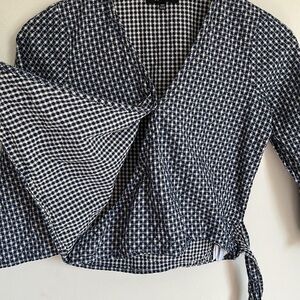 Madewell Navy Blue Checkered Wrapped Crop Top