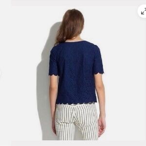 Madewell Navy Blue Lace Short Sleeve Blouse Top Scalloped Hem Size Small