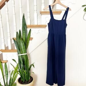 Madewell Navy Blue Square Neckline Smocked Button Front Crop Jumpsuit