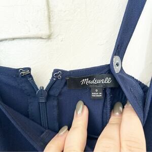 Madewell Navy Blue Square Neckline Smocked Button Front Crop Jumpsuit Size 0