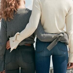 A refined, effortless navy sweater with cool ties on the sleeves (hint: we're into a double knot). Tuck this top into jeans and add some heels for a 9-to-5-to-whenever outfit. Reasonable offers welcomed ✨
