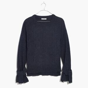 Madewell Navy Bow Tie-Cuff Pullover Sweater Coastal Preppy Size Small Preloved