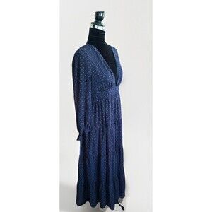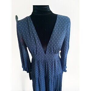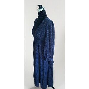 Madewell Navy Clip Dot V Neck Midi Dress Tiered Tie Sleeve Boho Prairie Size 8