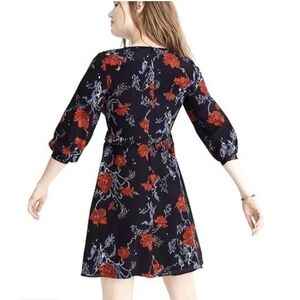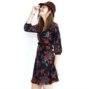 keywords: Madewell silk dress, floral silk dress, fall boho dress, long sleeve dress, navy floral dress, A-line silk dress, Madewell floral print, boho chic dress, boho silk dress, silk floral mini dress, versatile mini dress, whimsical dress