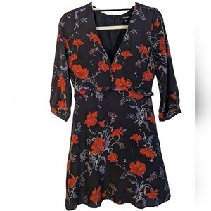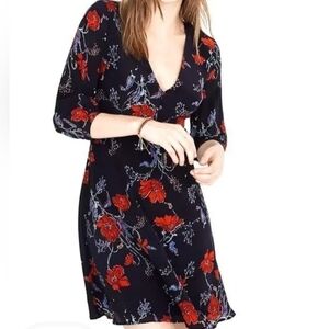 Madewell Navy Floral Silk Dress Size 0 Long Sleeve Fall Chic Style Mini Length