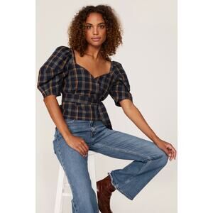 Madewell Navy and Brown Plaid Blouse