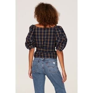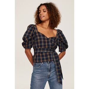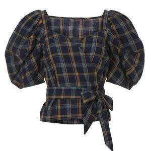 Relishing this stylish plaid blouse with puff sleeves. Features a square neckline and tie waist. Perfect for casual outings.In great condition, no stains or holes.