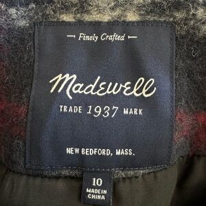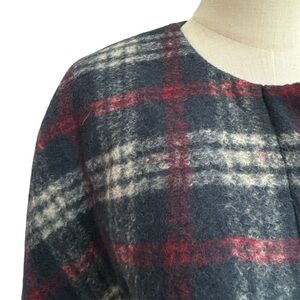 Madewell Navy and Red Brushed Plaid Soft Wool Blend Woman’s Estate Coat Size 10