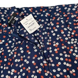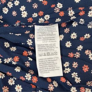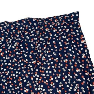 Features a navy base with red and white floral pattern. Perfect for casual outings.