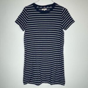 Madewell Navy and White Striped Short Sleeve T-Shirt Dress in Size Medium