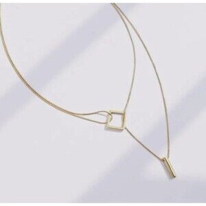 New without tags. Elevate your style with this stunning Madewell necklace, designed for the fashion-conscious woman. The necklace features a beautiful bar-shaped pendant with a yellow gold plated finish, layered with charming charms. The pendant hangs from a durable 18K gold-plated stainless steel chain, measuring 19.7 inches in length, perfect for any occasion.
