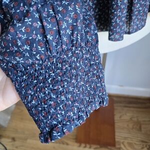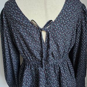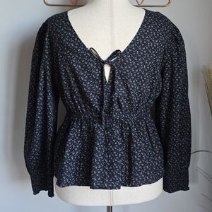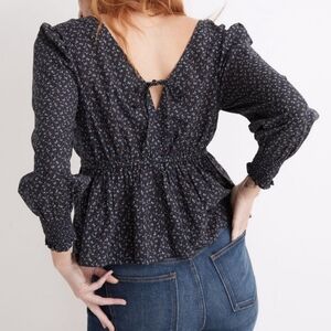Madewell, New, Tie Back Navy Floral Peplum Campden Daisies Shirt, Size Large
