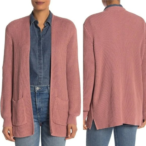 Madewell Nolan Ribbed Open Front Cardigan, 3X, Dusty Pink Mauve