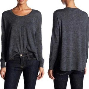 A soft, swingy merino sweater with a cool hem that's straight in front and curved in the back. Light, easy and a soon-to-be essential.
