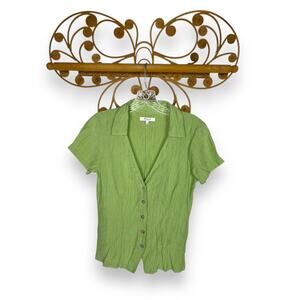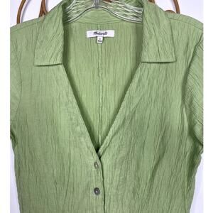 Madewell Notched V-Neck Button-Up Top Green S