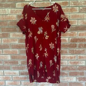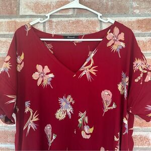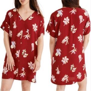 Women’s size medium Madewell Novel Bird of Paradise shift dress. V neck, red with floral print. Gently used condition - one small tear at the bottom seam (pictured).