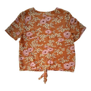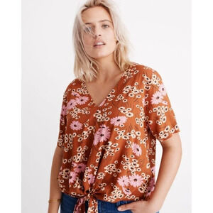Madewell Novel Tie Front Top in Hillside Daisies Shirt Blouse Top Rust Brown Med