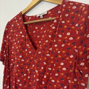 Madewell Novel Tie-Front Top in Prairie Posies Red Short Sleeve V-Neck Size XS