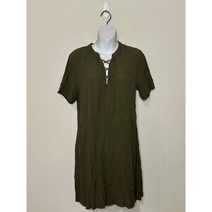 Madewell Novela Lace-Up Front Shift Dress Olive Green Viscose Size S EUC!!