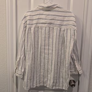 Madewell OG Sheer Oversized Striped White and Blue Button-Up Shirt