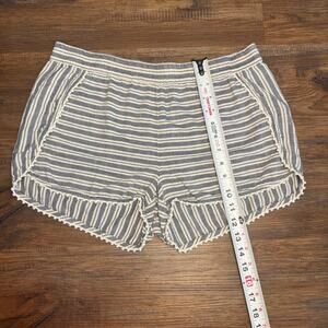 Madewell Oahu Cover-Up Shorts in Stripe White blue pom pom trim MEDIUM cotton