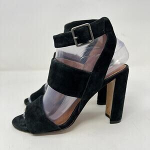 Madewell Octavia Black Suede Leather Strappy Block Heel Sandals Size 6 Black