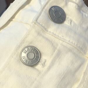 Madewell Off White and Silver Button Front Cream Denim Mini Skirt Size 25