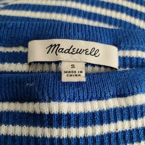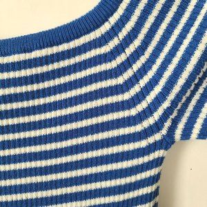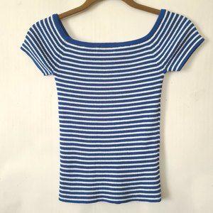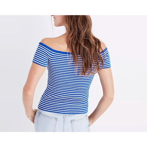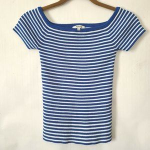 Madewell Off-the-Shoulder Sweater Top Blue White Stripes Sz S Ribbed Fitted EUC