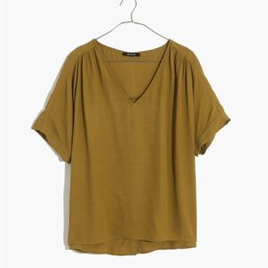 Madewell Olive Army Green Drapey V-Neck Button-Back Viscose Top, Small