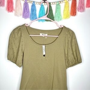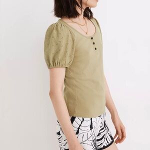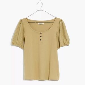 Madewell Olive Green Eyelet Sleeve Henley Short Sleeve Top Size Extra Small NWT