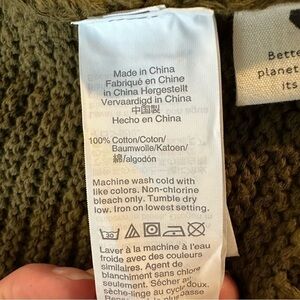 Comfy and cute chunky knit ruffle cardigan sweater from Madewell. It’s made of a soft cotton fiber that is warm but also breaths. You can tell it’s been washed and worn, but it has no stains, holes or pulls. It’s pre-loved but in great condition. 20” pit to pit, 23” length, 25” sleeves.