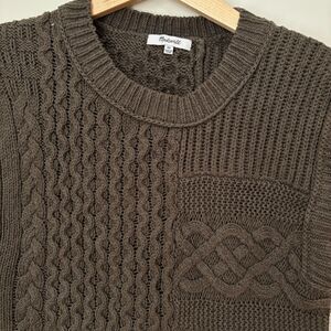 Madewell Olive Green Sweater Vest Size XS Chunky Cable Knit Patchwork Grandpa