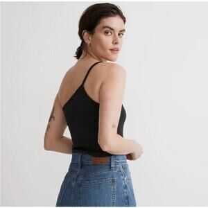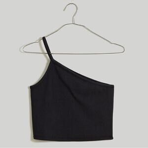 Madewell One Shoulder Crop Tank Top in Sleekhold Black Size XS