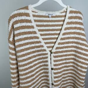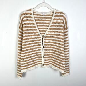 Madewell Open Knit Striped Cardigan Sweater White Tan Button Front Cotton XS