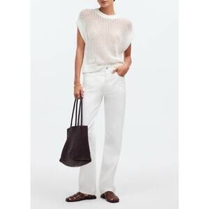 The MADEWELL Open Stitch Knit Sweater in size Medium is a new ivory sweater with a relaxed fit. This sweater features a solid pattern, open-knit style, and short sleeves, making it perfect for casual occasions and travel. Made from 100% cotton, this pullover sweater is machine washable and has a round neckline. The breathable and sheer fabric adds a classic touch to this versatile piece of women's clothing from the popular brand Madewell.