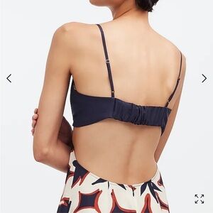 bring on your beach vacation. Crafted of luxurious silk, it has an open back, plus a peek-a-boo cutout at the front.