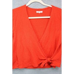 Madewell Orange Short Sleeve Wrap Top-Size Medium-Tie Front. Item is in Excellent Condition. The material is 100% Cotton. Laying flat measuring armpit to armpit it is 20'' and 19'' in length.