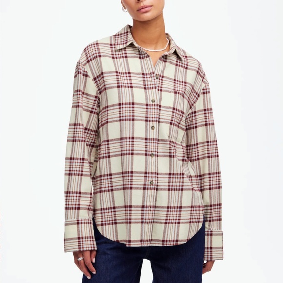 Madewell Organic Cotton Relaxed Straight-Hem Button-Up Shirt Plaid Alabaster M