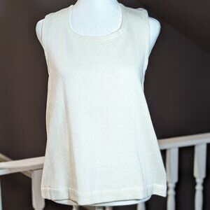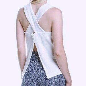 Madewell Ottoman Jacquard Cross-Back Tank Top, Size S. Color: Bright Ivory. Made of textural ottoman jacquard, this simple tank gets fancy in back with crisscross straps, delicate buttons and a skin-baring slit hem.