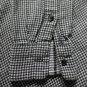 Slightly Oversized version Tomboy shirt with a cool slit shirttail hem. Contrasting Double-faced fabric with a coordinating check on the flip side. Two Chest Patch Pockets. 100% Cotton. Machine Wash.