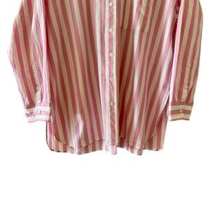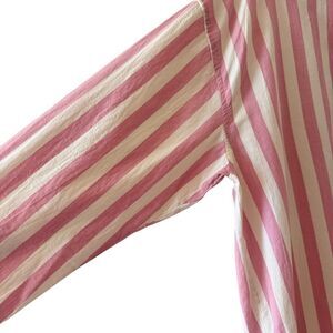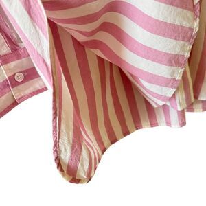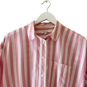 Madewell Oversized Boyfriend Cotton Button Up Shirt Spread Collar Stripes Pink SZ M #2469