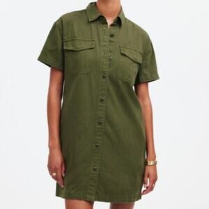 Madewell Oversized Mini Shirtdress Army Green Button Down Dress Cotton Medium