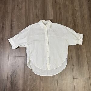 Madewell Oversized Pleated-Sleeve Button-Up Shirt Womens XS White Linen Cotton