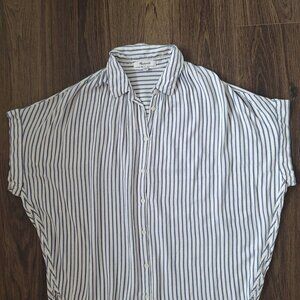 💙 Madewell Oversized Short Sleeve Button Up Blouse Pin Striped 100% Viscose Flo