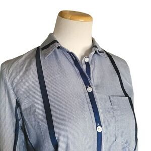 Madewell - Oversized Striped Blue Button Down Tunic Long Sleeve Tunic Size Large