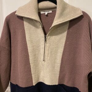 Madewell Oversized Wool 1/2 Zip Colorblock Pullover EUC