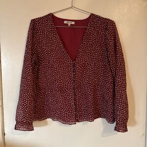 Madewell Overture Red Ditsy Flower Balloon Sleeve Top Romantic Preppy | Sz Smal