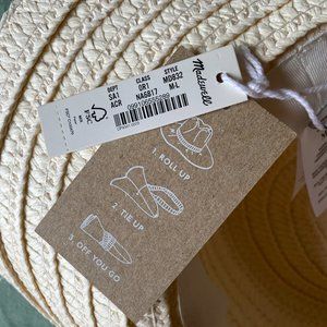 Brand new with tags. Size M-L. M/L=22 1/2" inner circumference, 3 1/2" brim width. Go ahead and throw this braided straw hat into your bag, it's perfectly unstructured so you don't have to be too careful when packing it up. Paper straw.