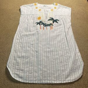 Madewell Palm Tree Sunshine Embroidered Blue White Striped Sleeveless Top XS